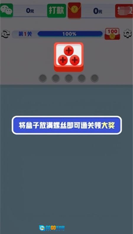 游戏顶部会显示通关进度,一旦进度达到100%,就能直接通关并领取相应红包,因此需时刻留意进度情况,合理规划螺丝的消除顺序,以便尽快达成通关要求。