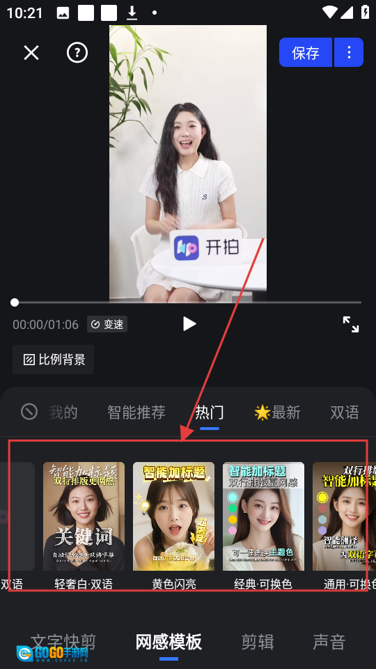 切换到【网感模板】界面,挑选心仪的模板,就能为视频增添网感效果啦。