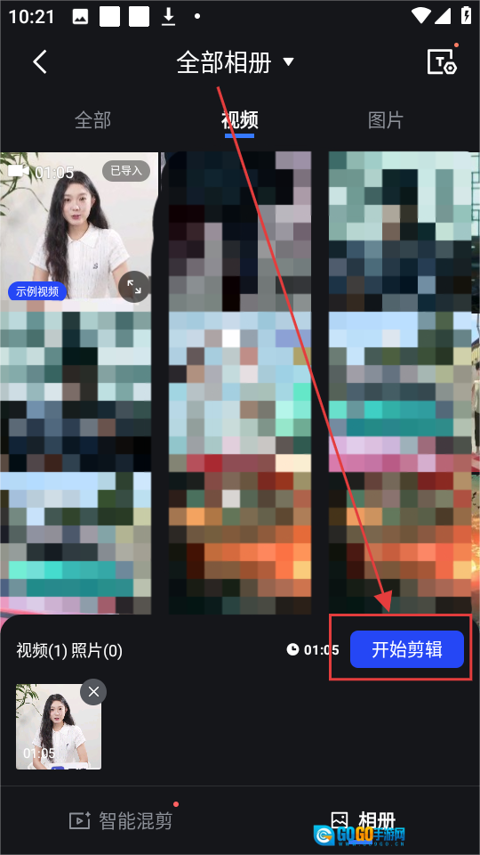 从相册里挑选好想要剪辑的视频,点击【开始剪辑】按钮,就能进入视频编辑界面了。