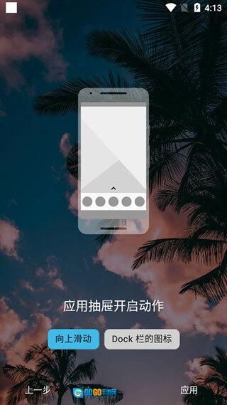 接下来选择应用抽屉开启动作,点击应用;