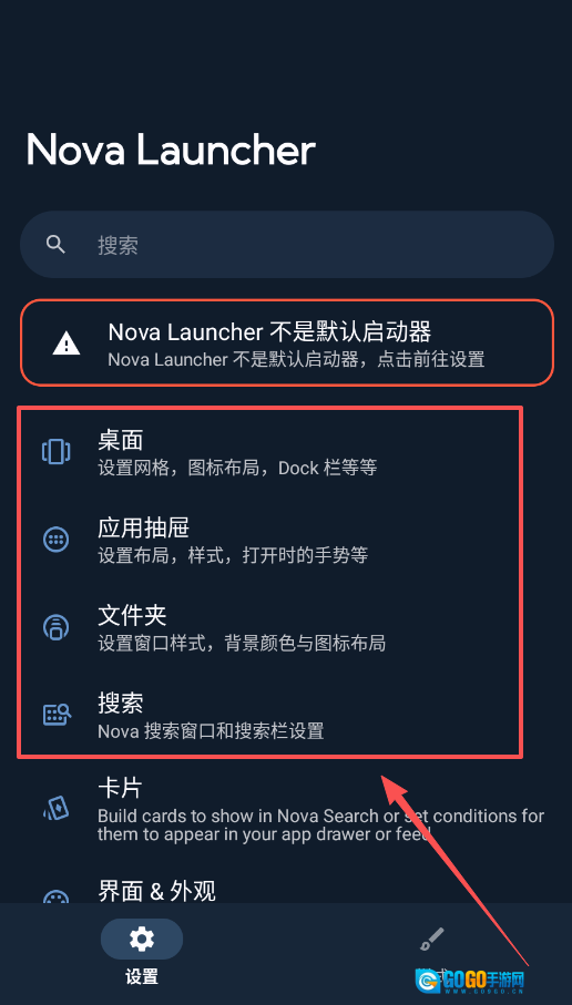点击^符号,进入nova设置界面后,就能开展自定义设置操作。