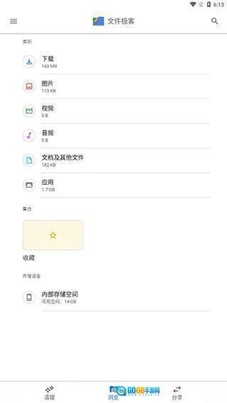 2、浏览界面可以查看图片、视频、音频、文档、应用,还有的文件,合集,内部存储空间。