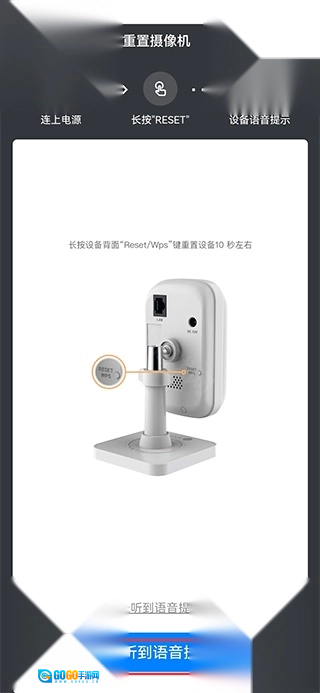 四、按照提示将摄像头重置,听到语音提示后点击已听到语音提示