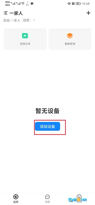 一、打开移动看家智能监控,在首页中点击添加设备