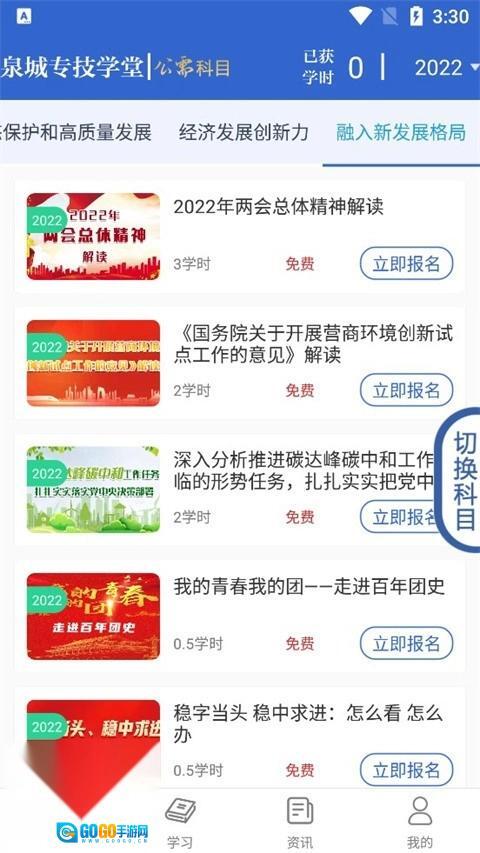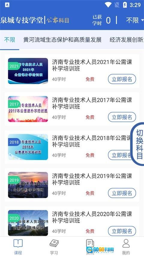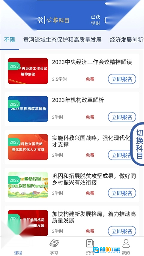 2、然后进入“课程”页面可以选自己想要的科目,点击“立即报名”。
