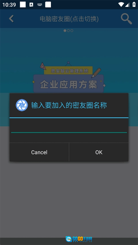 3、输入要加入的密友圈名称,点击OK即可加入。