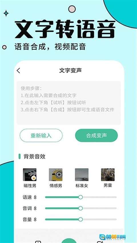 3、软件支持语音变声功能,录制一段语音即可变声成不同的类型;