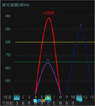 如右图所示:魔盒扫描图信道分析结果:A、C 信号好,无干扰;