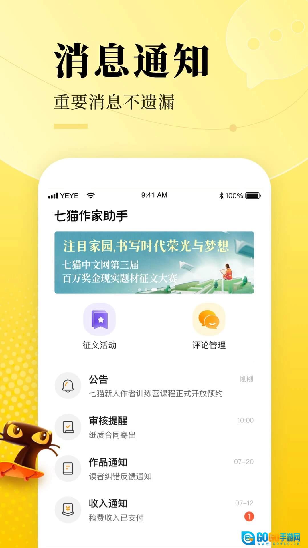 实时通知:第一时间推送审核结果、签约进度、征文活动及政策等重要信息。