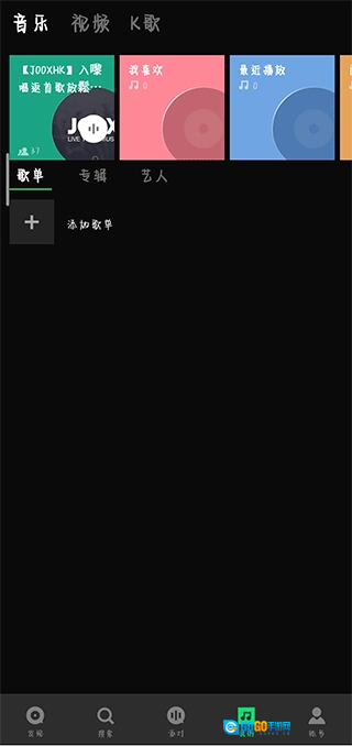 5、在我的界面,用户可以添加歌单、k歌。这里可以管理自己的音乐收藏和创作,创建个性化的歌单,记录自己的音乐喜好和创作成果,还能通过k歌功能释放自己的音乐才华,享受唱歌的乐趣,与他人分享自己的歌声.