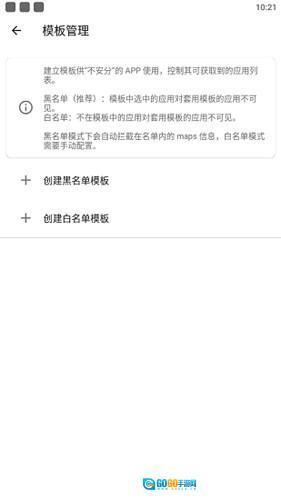 2、等待手机重启完成,打开桌面上的隐藏列表软件。点击模板管理 ,选择创建黑名单模板(模板名称随意),再选择编辑列表,找到我们需要隐藏的软件进行打钩,全部勾选完成后,重启手机。