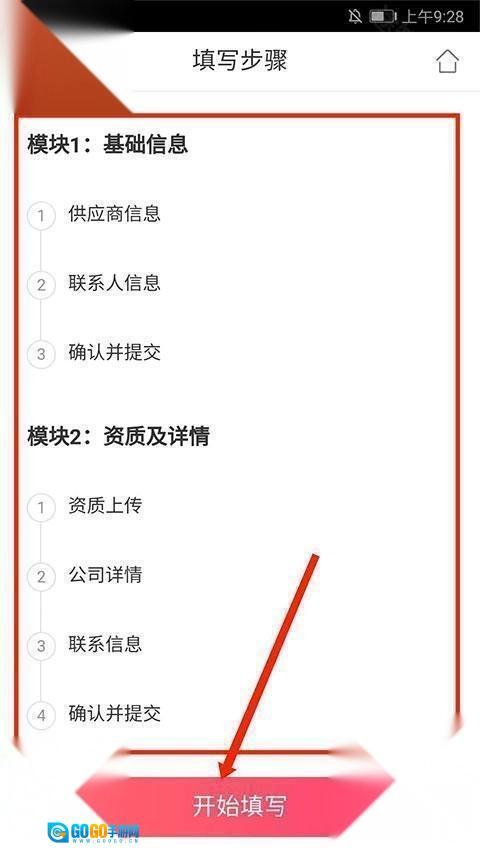 4、阅读完填写步骤后,选择下方“开始填写”即可开始入驻加盟。