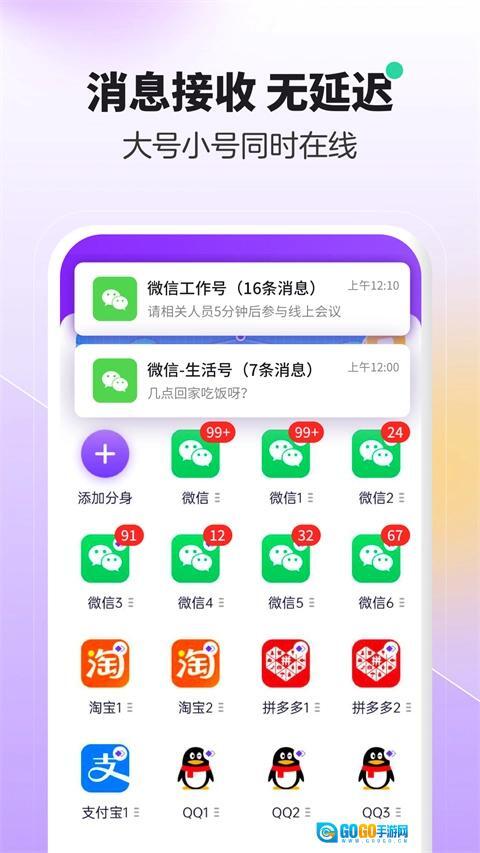 5、轻松免费实现社交软件分身,告别社交账户来回切换的烦恼,让你尽情分享,放肆聊天。