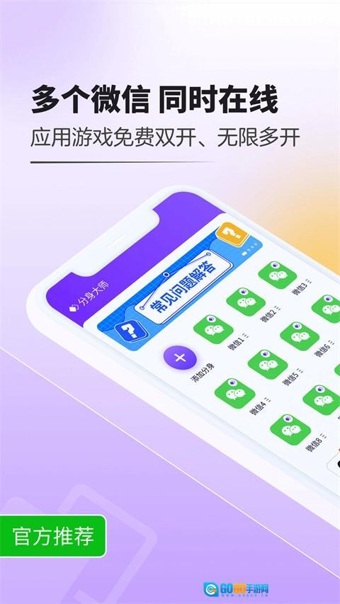 分身大师免费版是一款多开分身的手机多开工具软件,并支持多种应用程序和游戏。它易于操作,允许分身每个应用程序拥有独立的系统资源和流程,满足不同场景下用户的需求,而不会延误工作。它可以定制,以加速白名单,方便快捷地完成传输。它是一个多功能程序,允许用户每天同时登录多个微信、QQ和其他应用程序帐户,完全隔离和避免应用程序数据混淆等问题。同时,它支持一键分身、双/多打开所有应用程序和游戏,使独立安装和使用更加方便。
