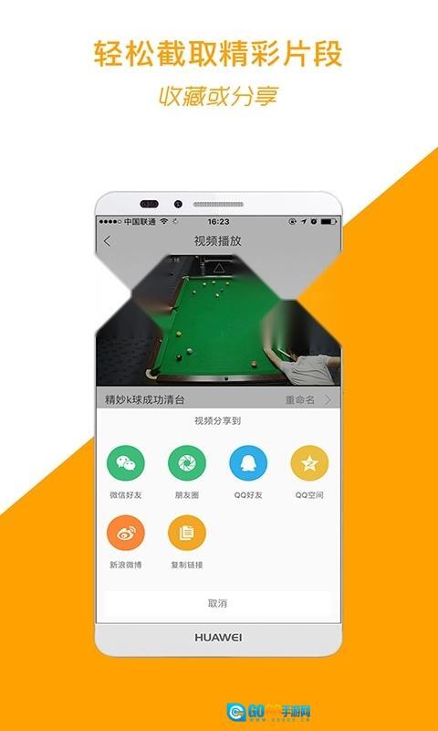 可以截取任意长度的运动视频片段,构建自己的视频库。还能一键发给好友,分享到微信朋友圈。