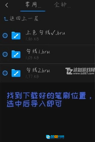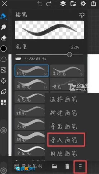 2、点击右下方的三条小杠,选择导入画笔