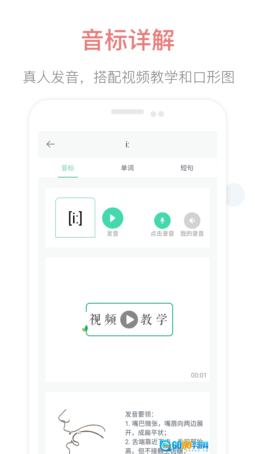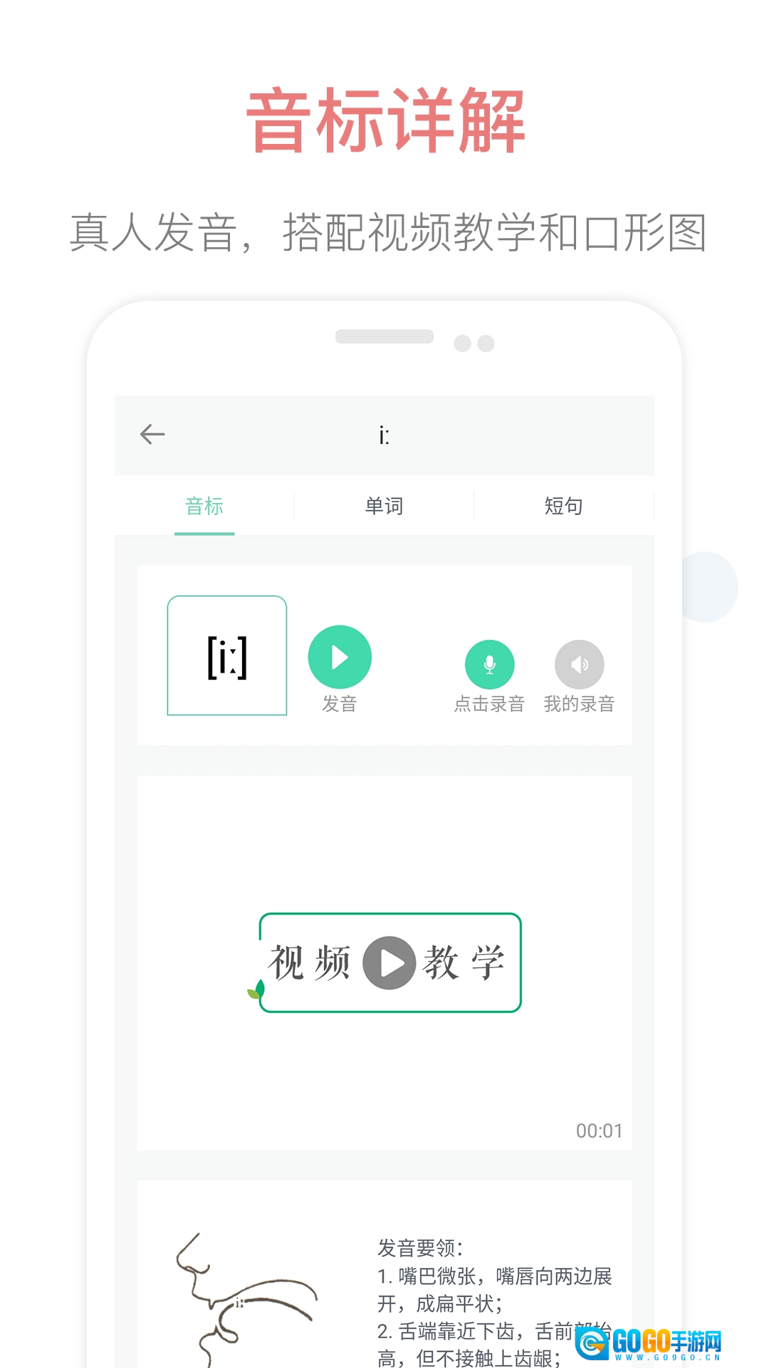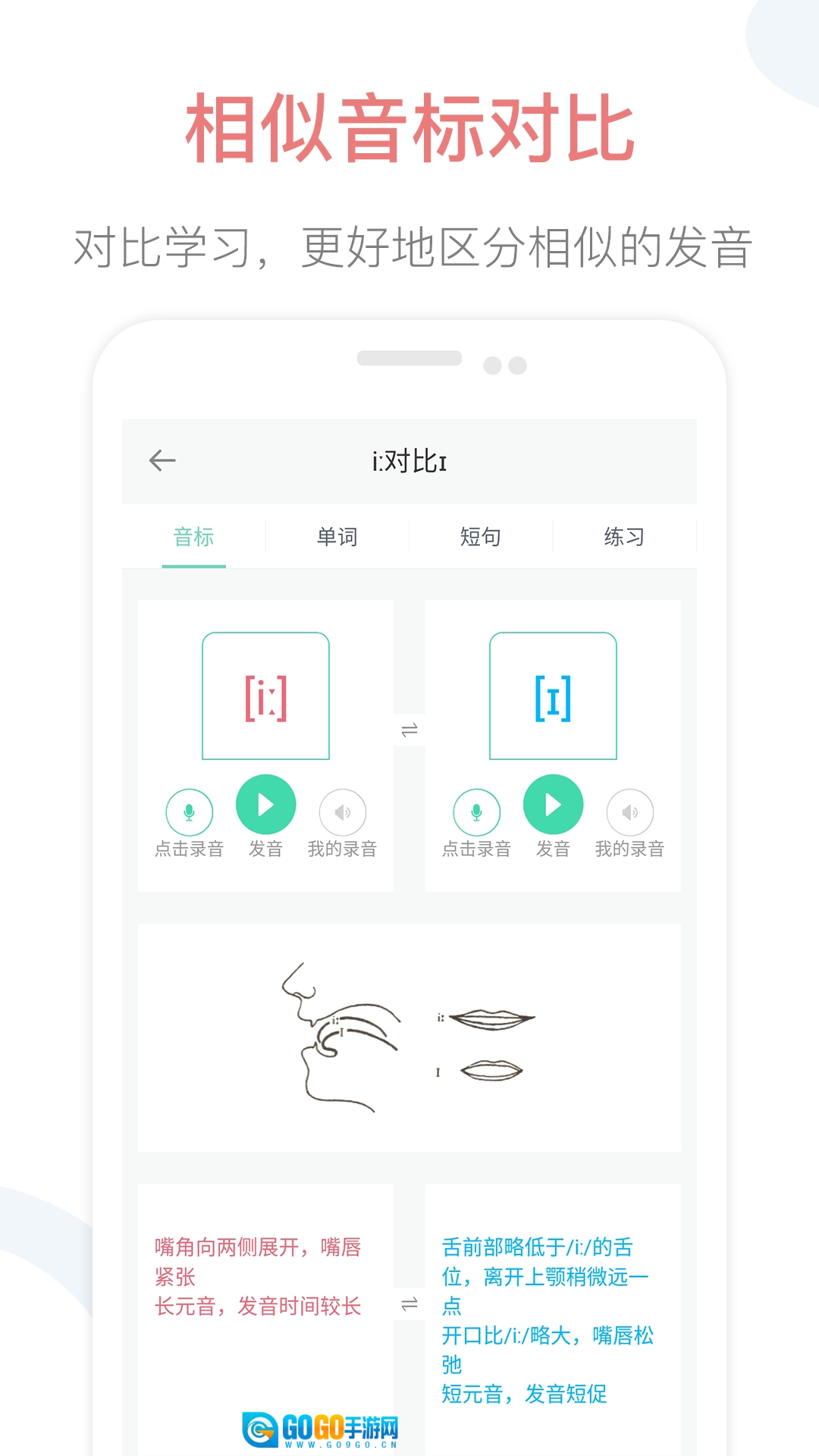 2、为用户提供详细的发音教学,让用户可以通过图文了解发音口型