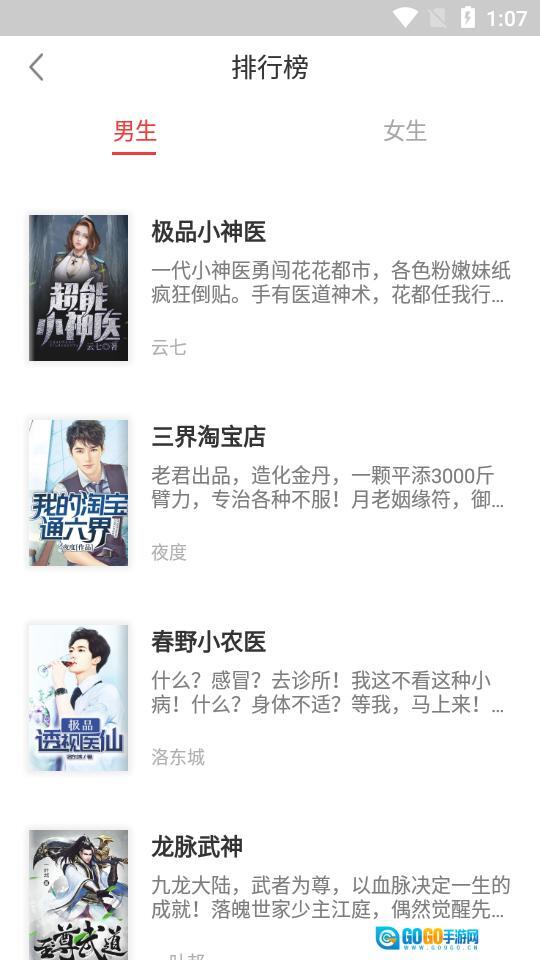 这里还有一个能阅读小说的交互区域,在软件的排名板块里可以查看各类小说的排名情况,同时也支持账号登录功能。