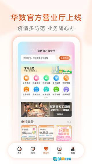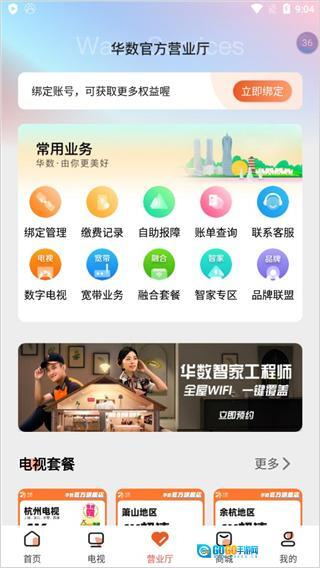 在“营业厅”板块中,涵盖了绑定管理、缴费记录、自助报障、账单查询、联系客服以及数字电视等功能。
