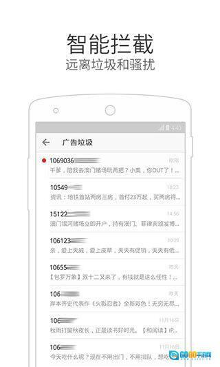 3、智能分类短信,让短信界面清爽整洁;为短信加锁,守护您的隐私!具备垃圾短信拦截与黑名单管理功能,助您远离骚扰。