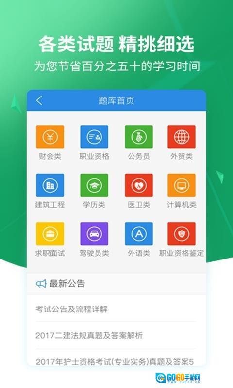 在这里,用户能够查看各类考试的公告信息,知晓不同考试的最新动态,从而进行相关内容的学习。