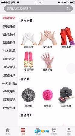 还有不少明细分类,像厨房清洁栏旁边就列着家用手套、清洁球和清洁抹布等多种类别。