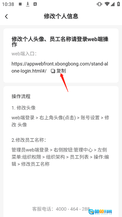 3、接着复制web端入口链接,登录web端对自己的名字进行修改。