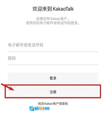1. 下载安装KakaoTalk,安装完成后打开该应用,接着点击界面上的“注册”按钮,从而开启注册流程。