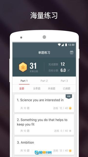 提供丰富题库和分类练习,包括机经高频题、口语真题和热点话题,支持循环训练和即时反馈,强化记忆和答题技巧,助力短期内提升成绩。