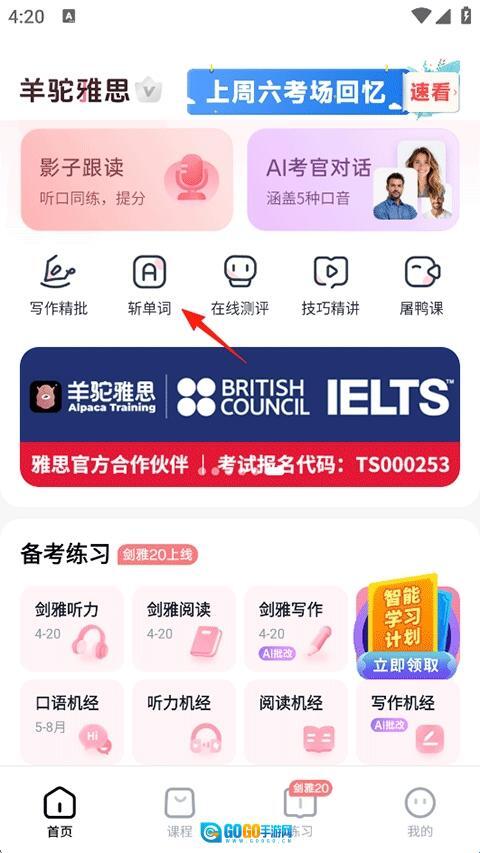 1、打开羊驼雅思,点击首页的斩单词;
