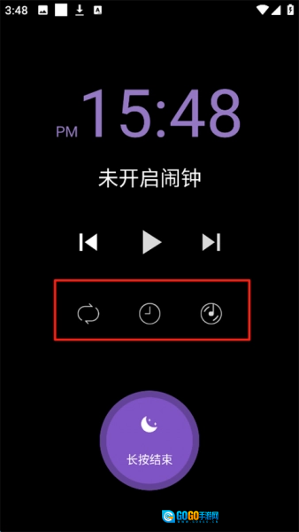 3、图片红框所示,依次为:播放顺序,睡眠闹钟,选择助眠音乐。
