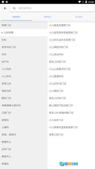 3、我们选择挂号预约,里面有不同院区的很多科室。