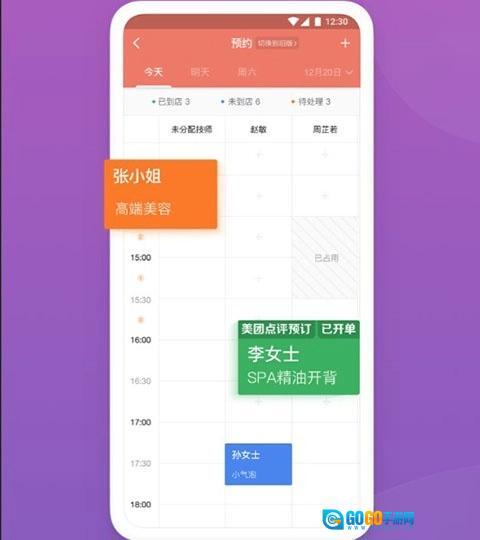用户在爬爬资源并打开软件之后,在工作台页面点击上方的预约,就可以对顾客预约的订单提前进行管理,安排好店员服务顾客,让顾客满意。