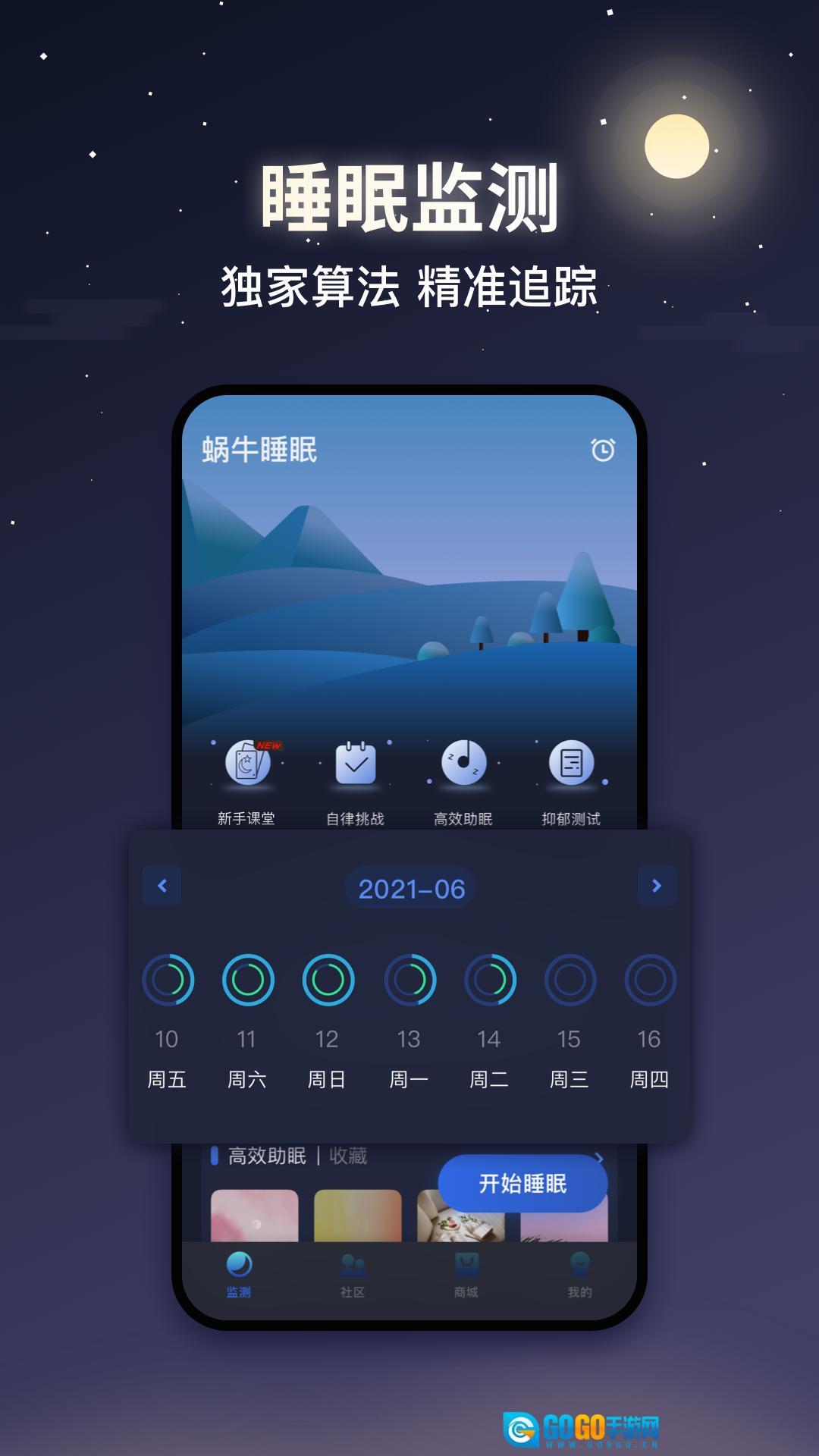 1、首先打开蜗牛睡眠软件,之后在夜间休息的时候我们点击【开始睡眠】;