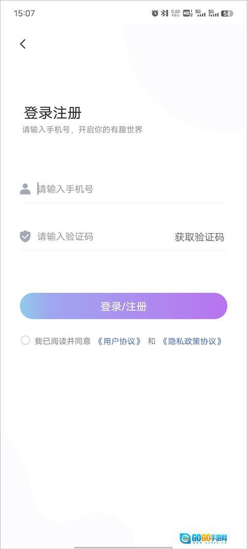 1、打开有趣世界,新用户先注册账号登录;