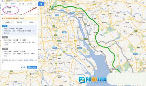 3、再在下面输入出发地点与到达地点就可以查询点于点之间的距离、收费和时间。