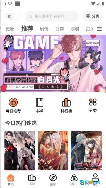2、首页将漫画进行了详细分类,包括剧情、日常、浪漫等类型,方便读者查找。