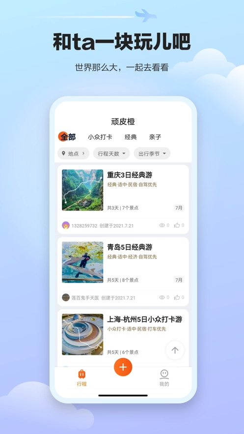 在顽皮橙旅行平台,您还能与他人互动交流并分享自己的旅行故事;借助手机,您可以更轻松地记录下旅途中更多动人的风景与心情文字。