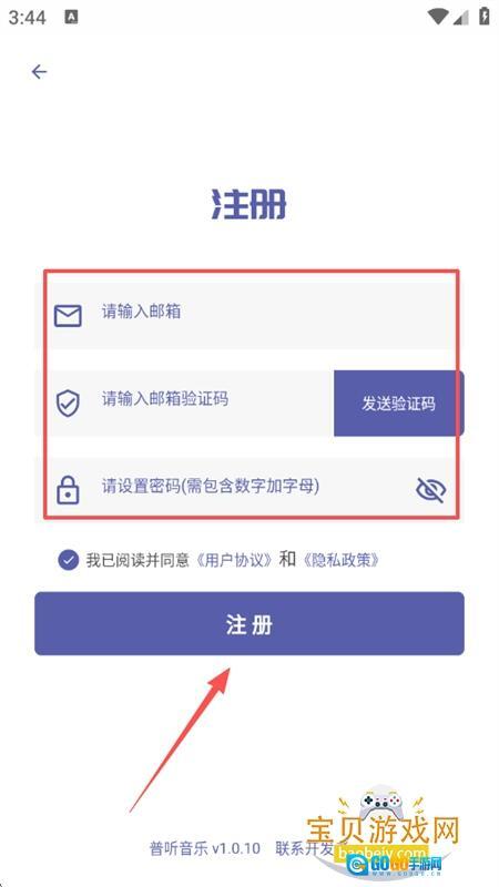 3、然后输入你的邮箱和验证码,设置好密码,点击注册即可