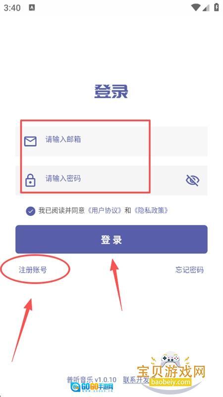 2、输入邮箱和密码,点击登录即可,没有的可以点击注册账号