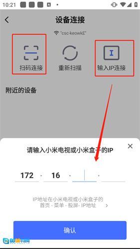 3、除了上述自动连接的方式外,我们还可以通过扫码或输入电视ip的方式进行链接