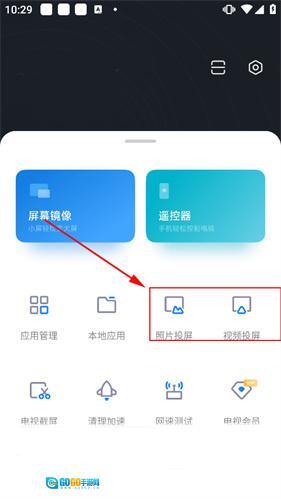 4、与电视连接成功后,返回软件主页点击其中的照片或视频投屏即可将手机上的画面投屏至电视机上