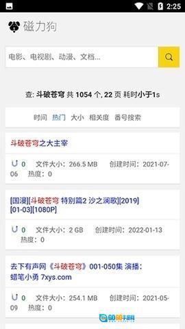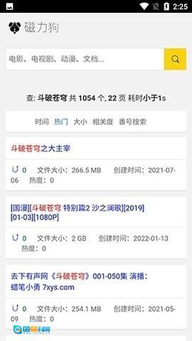 所有的搜索结果都会按照时间、人气、大小、相关度进行分类。在磁狗里,