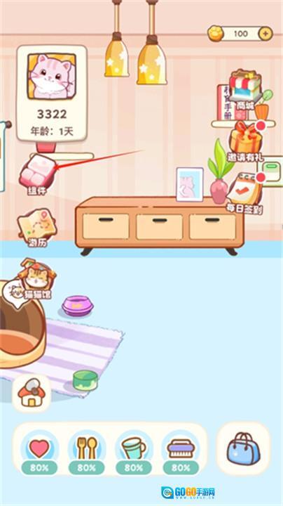 用户可以给猫咪喂食、洗漫、梳毛等,照顾猫咪的日常生活。