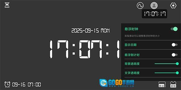 1、全屏时钟+酷炫皮肤,悬浮时钟;