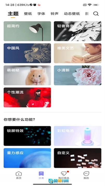 1、为用户带来各种不同的主题内容,可以让用户在这里快速的进行壁纸设置功能。