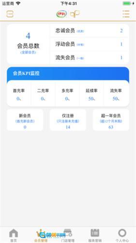 2、会员管理:我店会员、注册新客、充值新客、二次购买新客、会员积分排行及珍护试用装申领等功能。