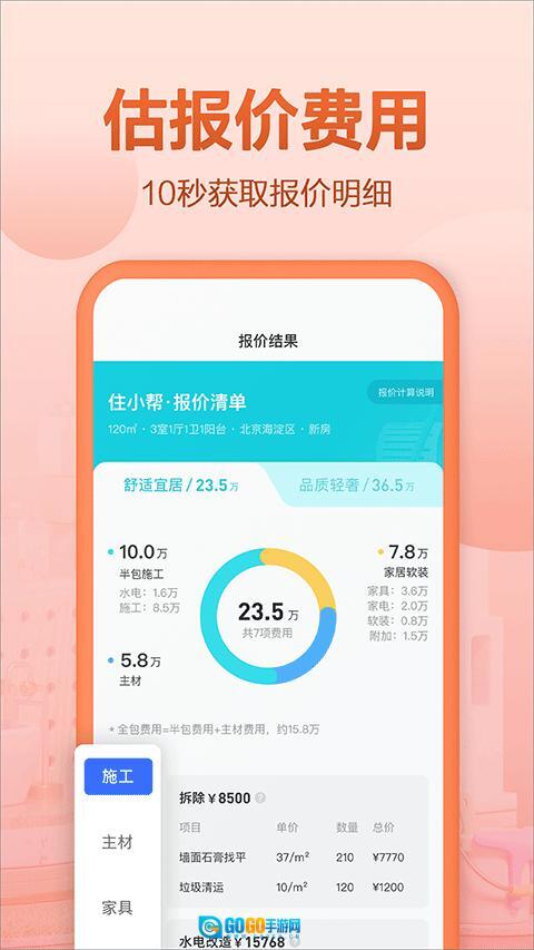 住小帮2025版是一款非常专业的房屋装修,覆盖水电、木工、厨卫、软装等各个方面,为用户提供全面指导,帮助你积累更多经验。该软件支持免费向设计师咨询,自由定制家装图,小白也能轻松装好家。