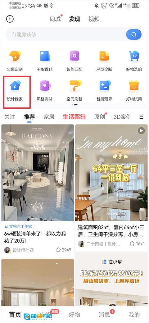 1、在首页中的发现页面中点击设计我家
