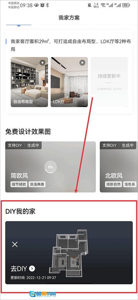 5、然后在我家方案中页面下滑到diy我的家